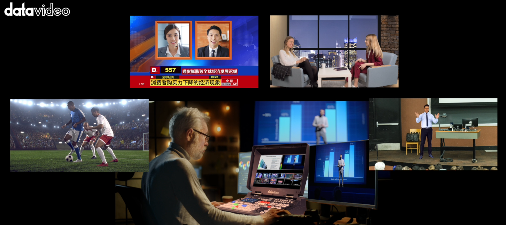所有信号无需任何转换设备直接接入SE-4000,实现了高清与4K信号的混合导切、画中画叠加、实时添加会标和多样转场效果,并可统一输出为4K超高清画质。