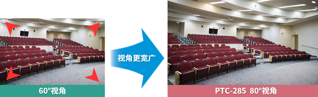 PTC-285则拥有12倍光学变焦和80°广角镜头,能部署于会场侧方,完整捕捉舞台全景、观众席互动等大场景画面,生动展现会议的规模与氛围。