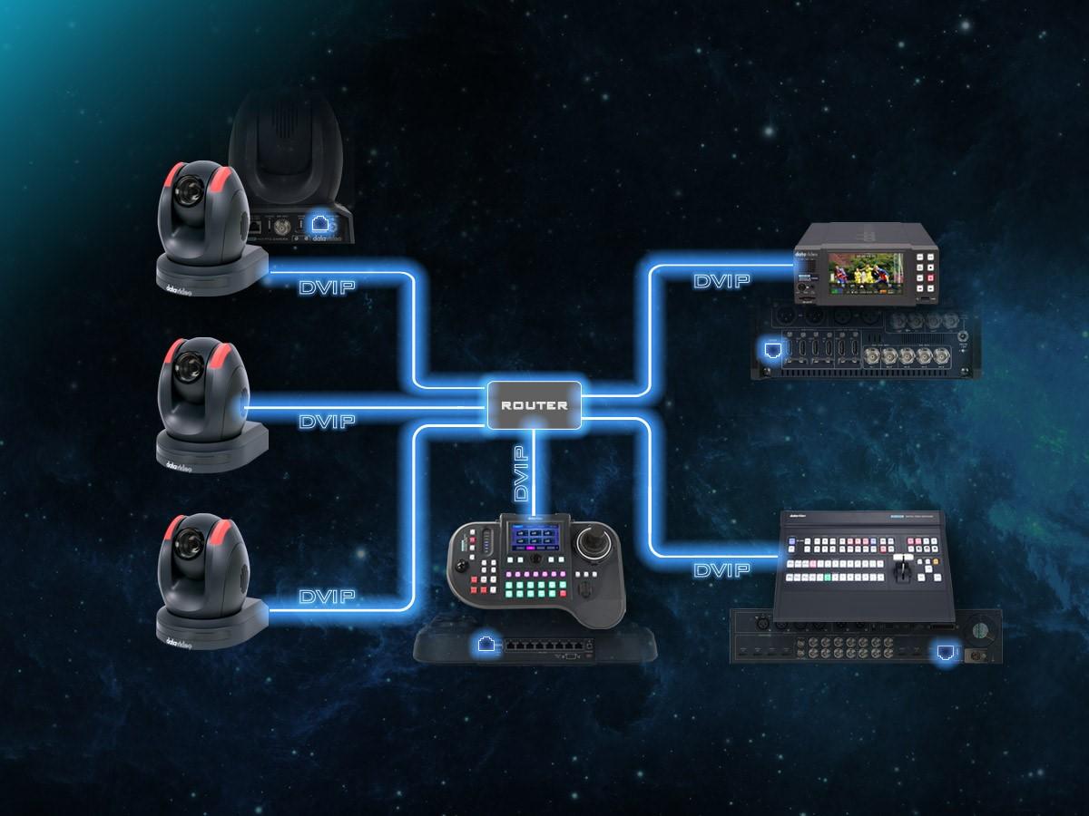 DVIP是洋铭专为专业音视频设备互联设计的网络控制协议。它的核心价值在于将分散的音视频设备转变为统一的网络化系统。