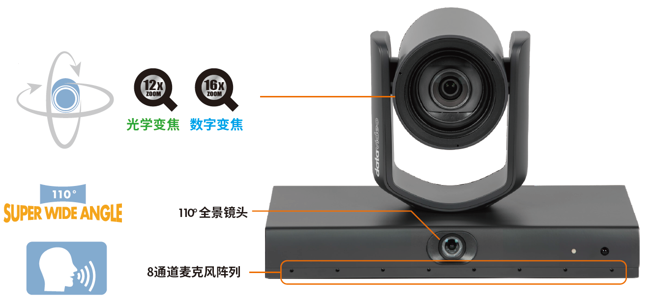 智能声像追踪:8麦克风阵列精准辨声,智能锁定发言者,全景镜头定位、PTZ镜头跟拍,还能根据场景无缝切换镜头,无需手动操控。