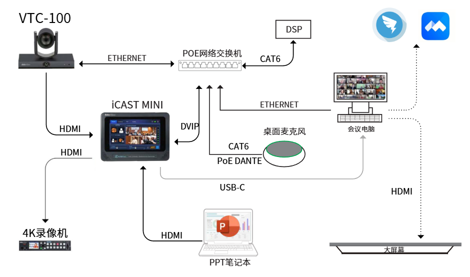 不管是混合式会议、企业直播、培训还是播客,AUTOCAST mini 都能轻松hold住。即插即用设计,搭配可选的PoE交换机、麦克风等配件,快速搭建系统,4K录制(需配录像机)、直播都能实现。